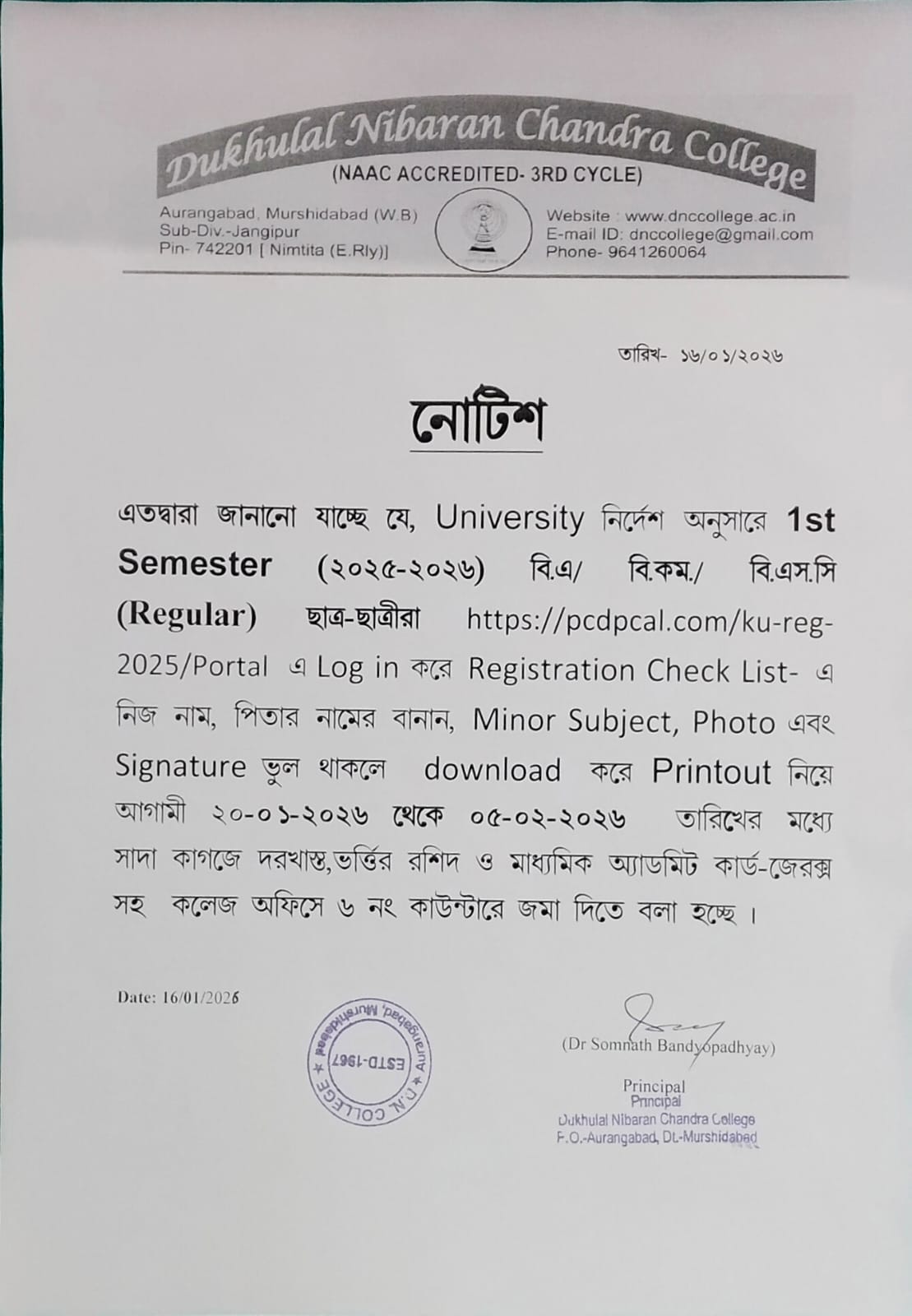 1st Semester Registration Check Link 2025-26